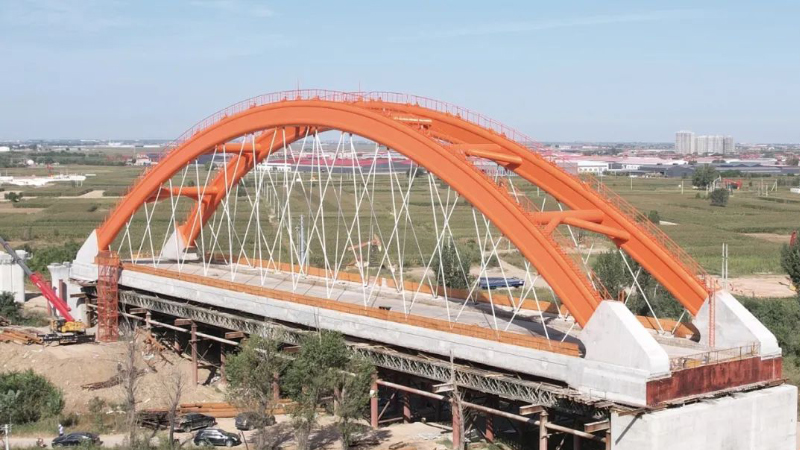 近日,跨捷地堿河特大橋主體鋼構(gòu)順利完工。跨捷地堿河特大橋全長(zhǎng)131米,為下承式有砟軌道雙線簡(jiǎn)支拱高速鐵路橋,主要承重結(jié)構(gòu)為提籃式鋼管拱肋及尼爾森吊桿體系,拱肋用七百余噸重型鋼結(jié)構(gòu)件及所有吊桿用鋼纜,均由巨力索具股份有限公司制造,安裝。