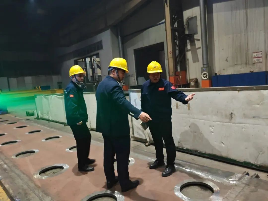 楊超先后來到鋼絲繩制造廠、鋼拉桿制造廠、冶金結構件制造廠、鍛造索具制造廠,深入了解各制造廠現場管理人員安排、場地施工安全標準、生產進度等情況。現場管理人員針對自己所負責的相關工作向楊超逐一匯報,并就施工中所面臨的難點疑問,提出了具體的建議和意見。