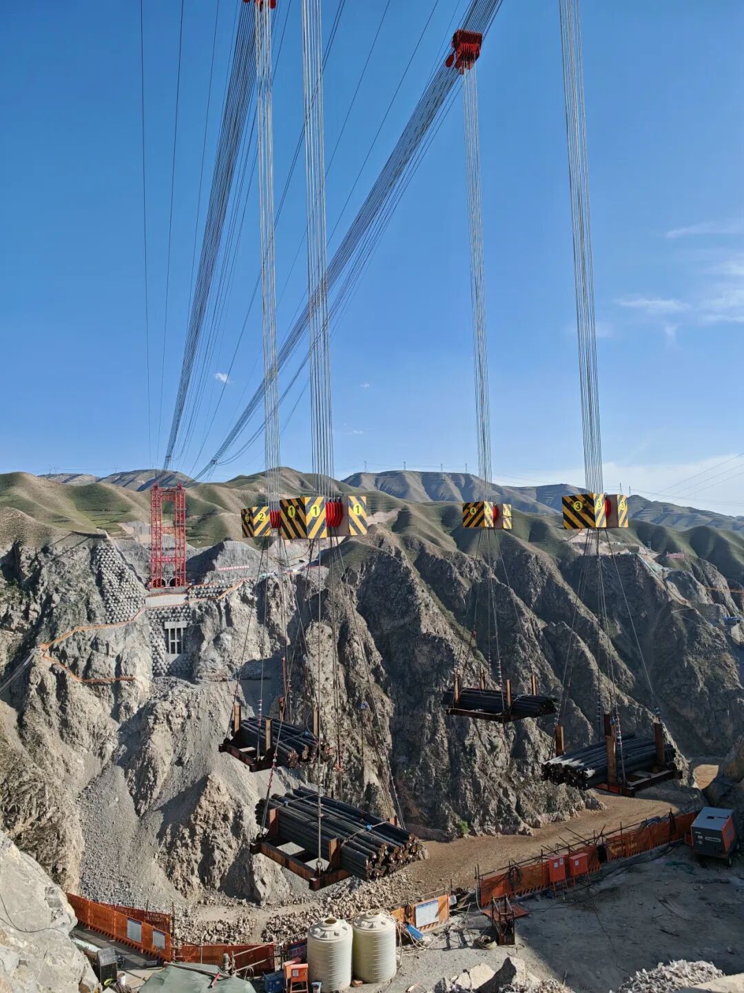 2025年5月10日,蘭永臨高速公路關鍵控制性工程洮河大橋500噸大型纜索吊裝系統試吊完成,標志著我國西北地區在建最大上承式鋼管混凝土拱橋建設取得關鍵突破,巨力索具吊裝系統成功為大橋主體施工按下“加速鍵”,大橋正式邁入主體結構施工階段。