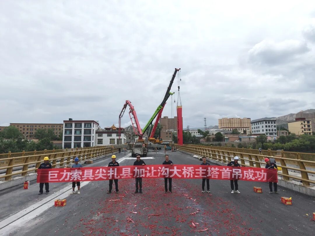 6月20日,在中國(guó)射箭之鄉(xiāng)——青海省尖扎縣的建設(shè)工地上,加讓溝大橋建設(shè)正熱火朝天地有序進(jìn)行,主塔首吊作業(yè)取得圓滿(mǎn)成功。巨力索具股份有限公司承建了該項(xiàng)目的所有上部懸索結(jié)構(gòu),包括基座及主塔鋼結(jié)構(gòu),索鞍和索夾鋼結(jié)構(gòu),懸索橋主纜,吊桿用鋼拉桿及錨固鋼拉桿。巨力索具憑借其強(qiáng)大的綜合實(shí)力,一舉滿(mǎn)足了該項(xiàng)目的所有精密鋼構(gòu)件的制作和安裝工作。