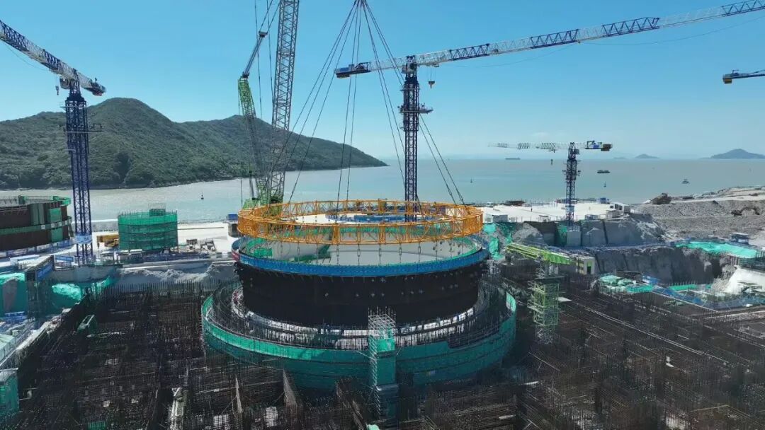 歷經4個小時的奮戰,金七門核電1號機組鋼結構安全殼鋼襯里模塊一平穩吊裝就位,為核島反應堆廠房內部結構和內外殼并行施工奠定了堅實基礎。