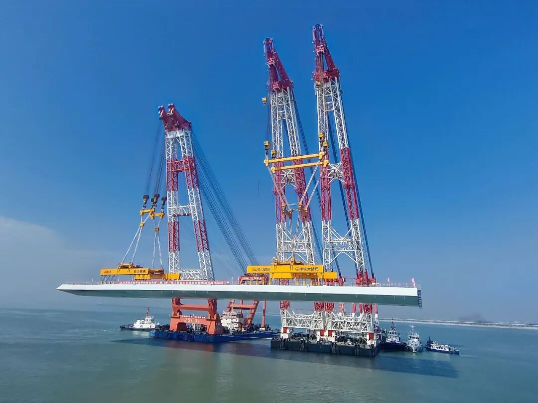 2025年12月20日下午,廈金大橋(廈門段)建設項目迎來重大施工節點,由中國中鐵承建,中鐵大橋局負責吊裝的全橋首榀海上裝配式大節段鋼箱梁吊裝順利完成,本次吊裝采用的吊索具產品均由巨力索具提供。本次成功吊裝標志著全橋鋼箱梁施工正式拉開帷幕,項目正式進入核心結構的施工階段。