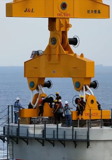 巨力索具創(chuàng)新開發(fā)了“一體式智能平衡吊具系統(tǒng)”助力杭州灣跨海鐵路橋首座預(yù)制墩身成功架設(shè)。此次預(yù)制墩身架設(shè)是世界首次在強(qiáng)潮海灣復(fù)雜水文條件下完成!