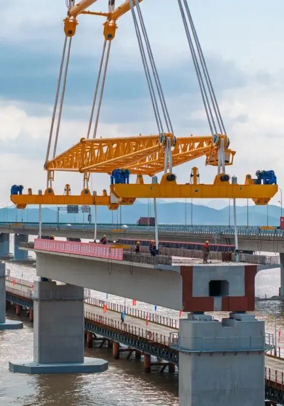 巨力索具箱梁吊具全程保障國(guó)內(nèi)首座市域(郊)鐵路跨海大橋——象山線跨海大橋,重1700噸的預(yù)制箱梁成功架設(shè)。