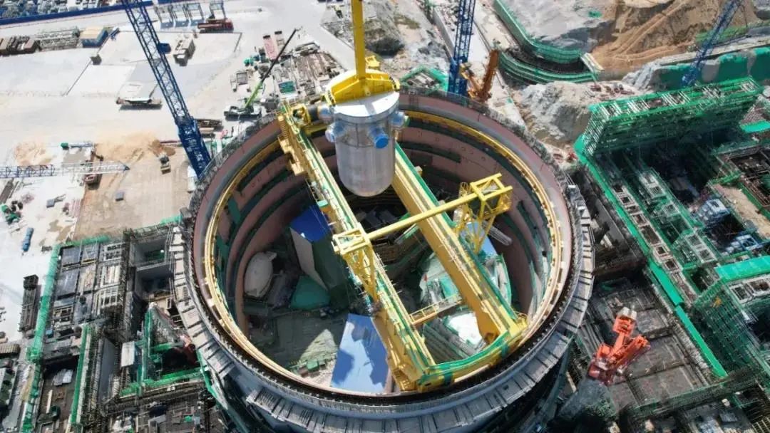 目前反應堆壓力容器、蒸汽發生器等核島主設備已全部開頂引入就位,按計劃擬于10月底實現內穹頂吊裝。