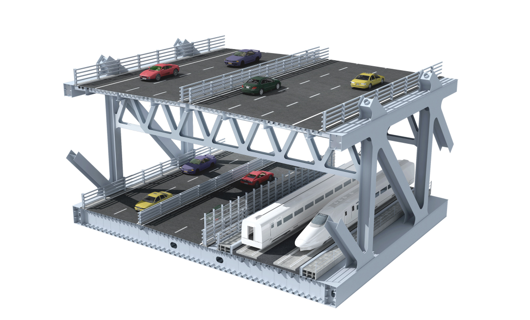 常泰長江大橋主航道橋鋼梁采用雙主桁“N”形鋼桁梁,桁高15.5米,桁中心間距35米,主橋鋼梁在工廠內整節段制造、運輸,全橋共91個大節段,節段長度14米~28米,節段重量900噸~1856噸。