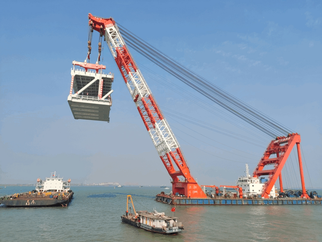 面對施工中高聳支架體系安裝、超高空吊裝、長距離同步拖拉滑移等眾多施工技術難題,加之該地域海工環境復雜,對吊具平衡性、安全性、精準度提出很大挑戰,巨力索具項目團隊在吊具方案設計上,多次與項目部超前籌劃、比選論證專項吊裝施工方案,從吊具結構、材料性能、全橋鋼箱梁兼容性等方面進行優化升級,確保吊裝工作順利進行。