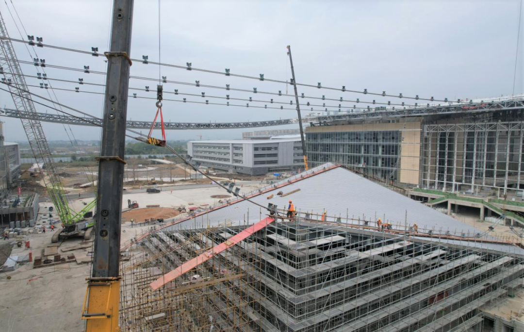 近期,由巨力索具參建的杭州中法航空大學項目迎來重要節點,位于50米半空中的公共中心組團大屋面鋼結構拉索全部完成,由此,長395米、寬160米的巨型“機翼”初具雛形,也為大學整體工程在今年二季度竣工奠定了扎實基礎。