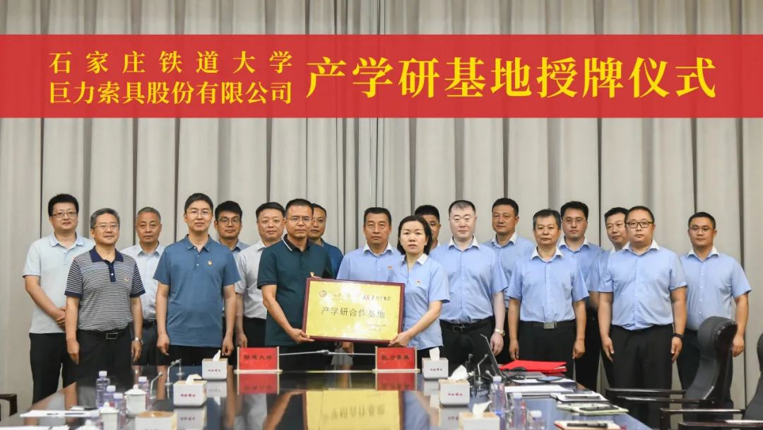 2023年7月4日,石家莊鐵道大學(xué)土木工程學(xué)院韓東海書記一行10人到訪巨力索具,雙方就產(chǎn)學(xué)研合作和黨建工作進(jìn)行交流座談,舉行了戰(zhàn)略框架協(xié)議簽字儀式暨石家莊鐵道大學(xué)產(chǎn)學(xué)研基地授牌儀式。巨力索具常務(wù)副總裁李彥英、集團(tuán)黨委副書記李天明、副總裁亢永剛接待并出席儀式。