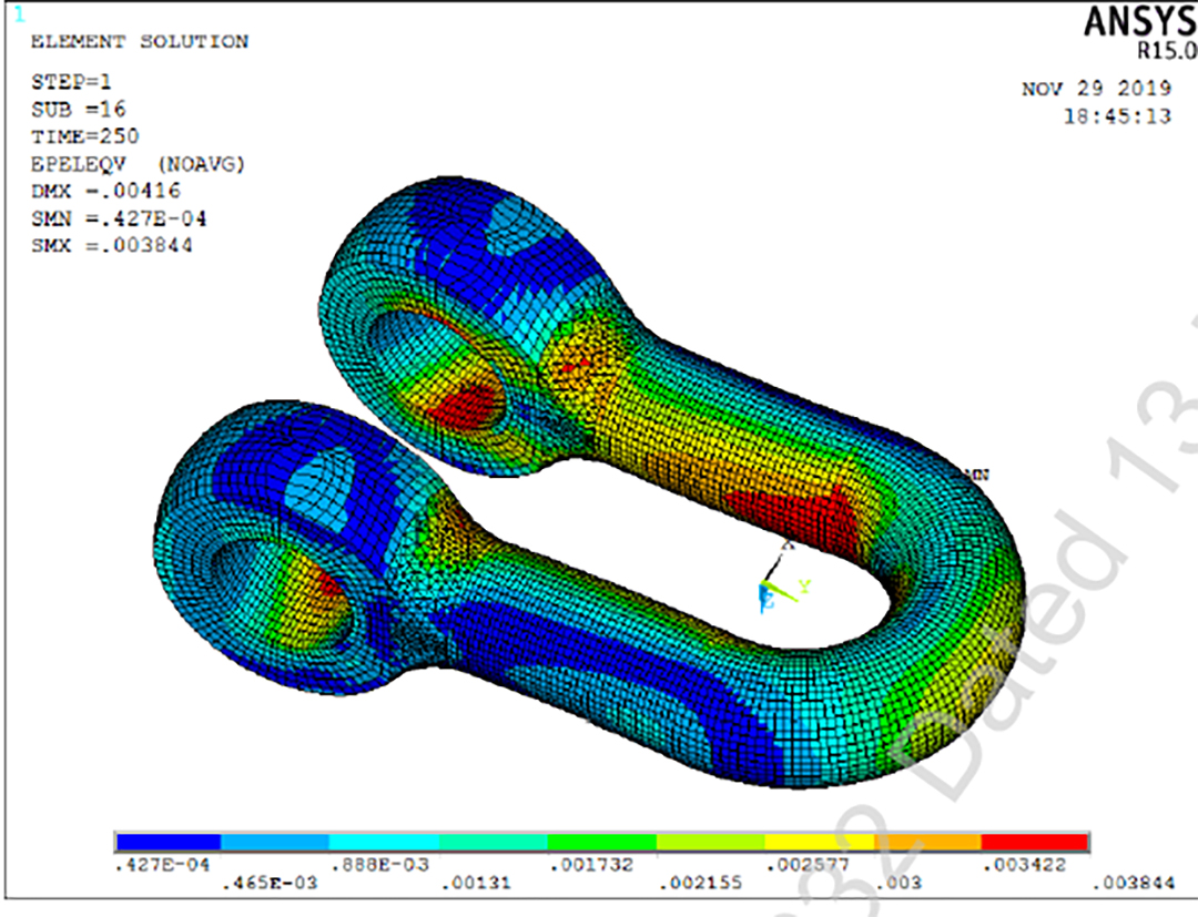 卸扣疲勞試驗次數(shù)達到138132次,遠大于API等相關(guān)標準的疲勞試驗要求。